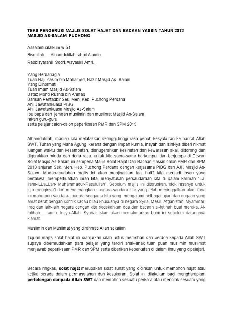 Teks Pengerusi Majlis Solat Hajat Smkpp Pdf