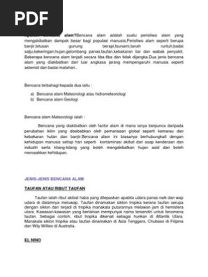 Kebanyakkan bencana alam yang berlaku berpunca daripada sikap manusia itu sendiri. Huruf jawi yang boleh disambung. Fenomena ini dibuktikan melalui kejadian tanah runtuh banjir kilat jerebu tsunami gempa bumi dan letusan gunung berapi yang sering melanda dunia.